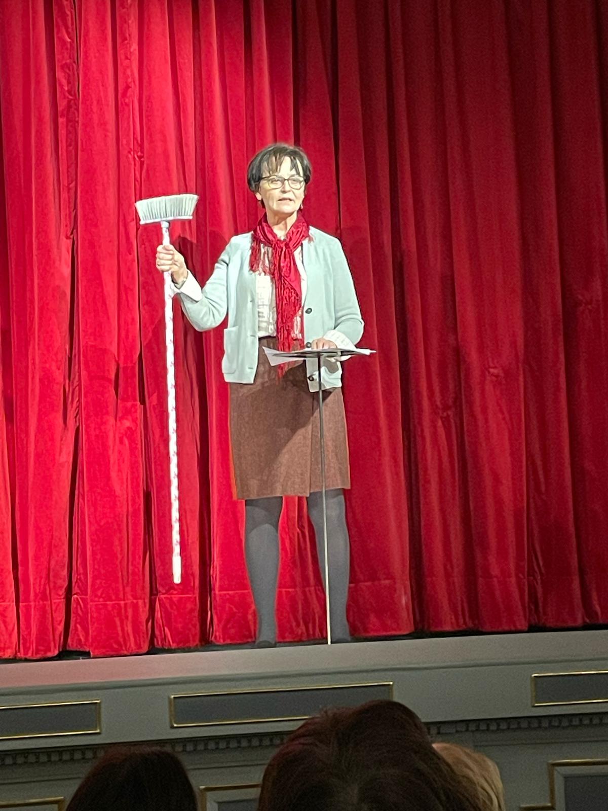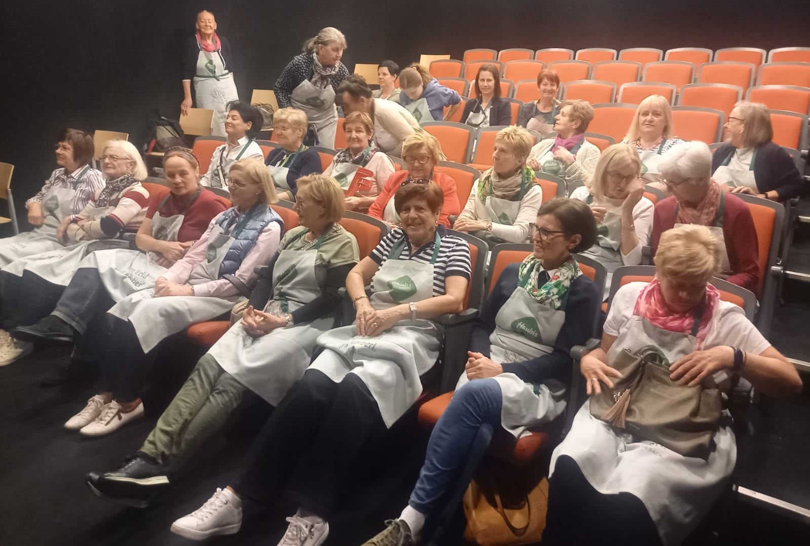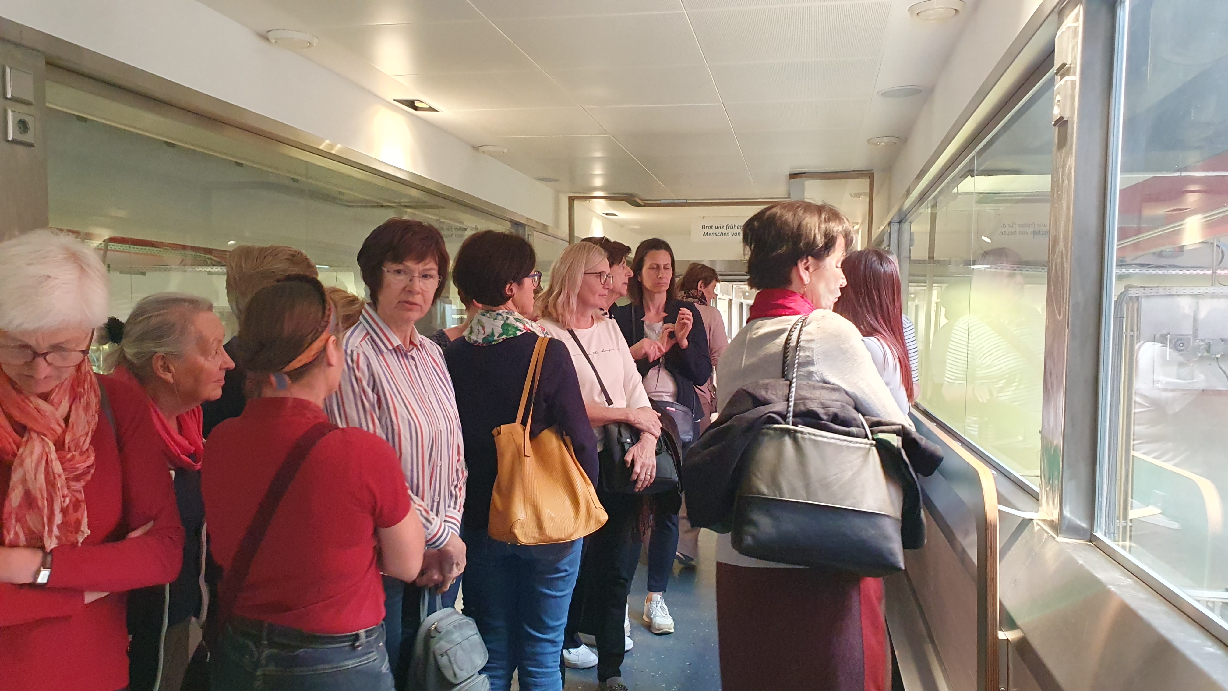 Zu Mittag ging es weiter nach Grein, wo wir für das Essen beim Schörgi einkehrten. Nach einer Stärkung besichtigten wir das historische Stadttheater. Im Zuge der Führung konnten wir den Kostümfundus, den Backstage-Bereich und natürlich den Theatersaal selbst sehen. Bis heute werden im ältesten bürgerlichen Theater Österreichs noch Aufführungen gemacht – unter anderem von uns Goldhauben an diesem Nachmittag. Mit einem Kanon von uns Damen erfüllten wir den Theatersaal mit Gesang.