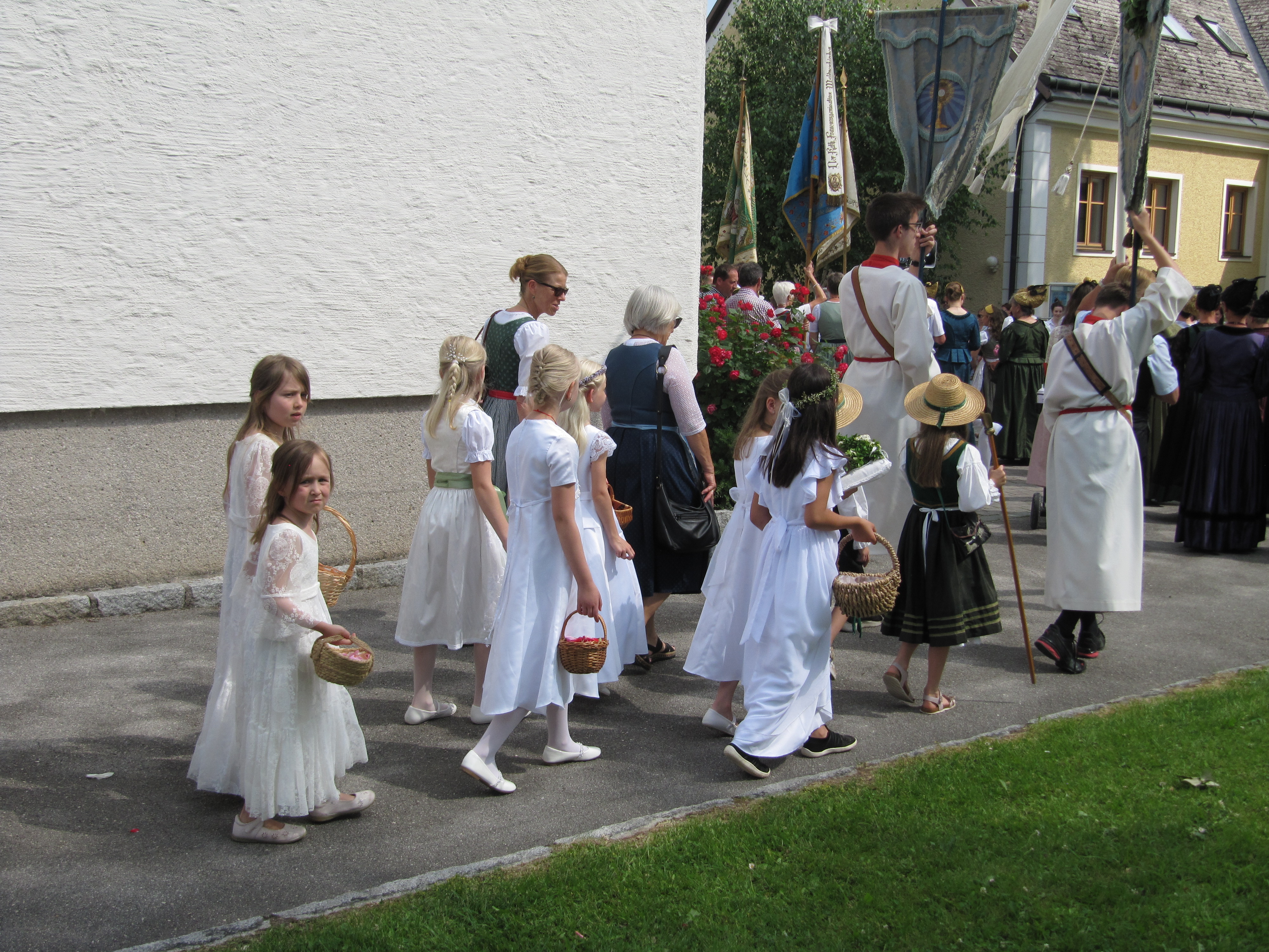 Auch dieses Jahr war das Fronleichnamsfest ein wahres Highlight. Um 9:00 Uhr startete der Einzug in die Kirche, wo bis 10:00 Uhr die Feiertagsmesse abgehalten wurde. Gleich im Anschluss folgte der Umzug, bei dem an den vier wunderschön dekorierten Stationen innegehalten wurde. Einen gemütlichen Ausklang der Feier gab es beim gemeinsamen Mittagessen am Dorfplatz. Zudem verkauften die Goldhauben dort Kaffee und Kuchen. Die Einnahmen kamen einem guten Zweck zugute.