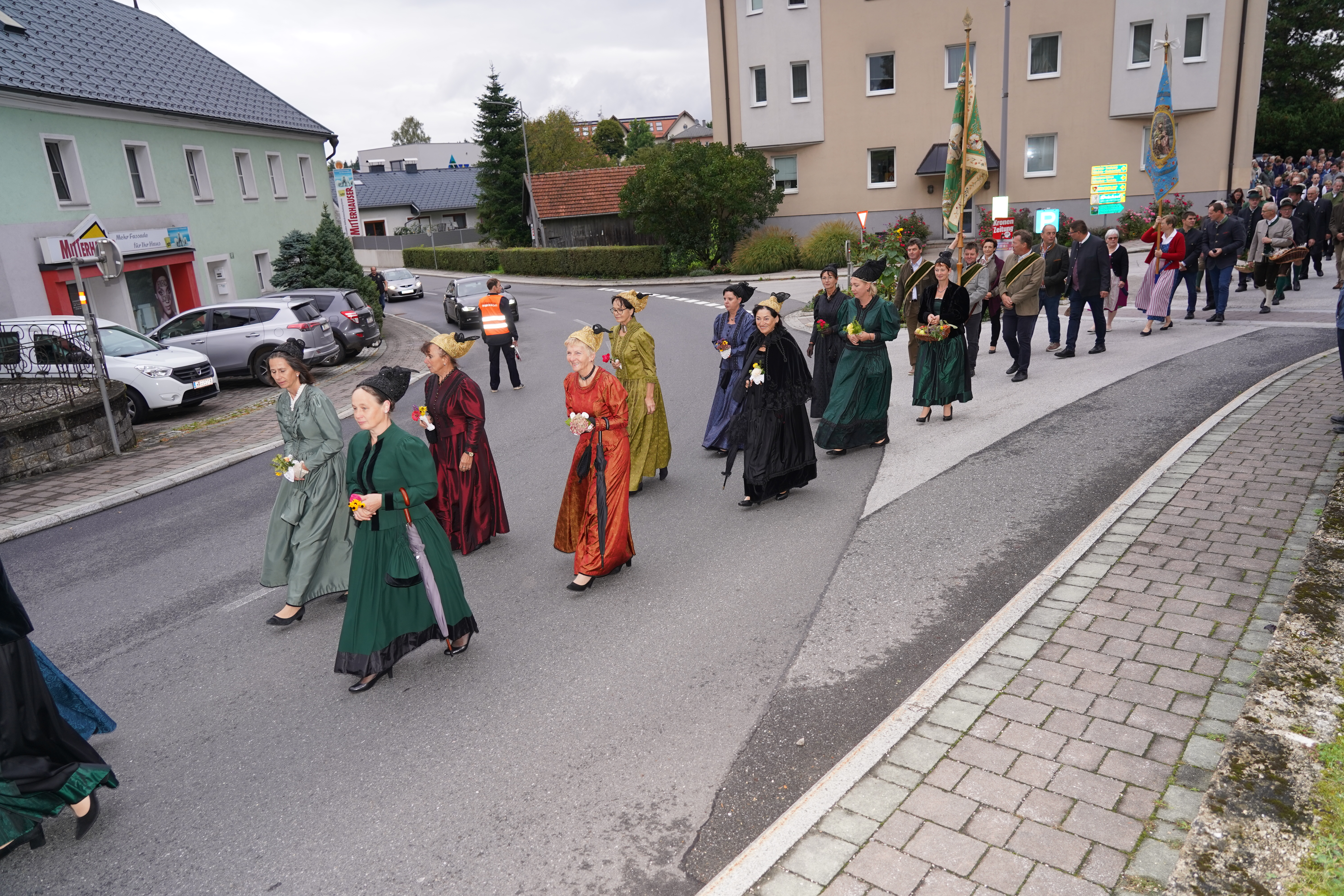 Zu Ehren des Erntejahres begann der Feiertag mit eröffnenden Worten von Herrn Pfarrer Alois Hofmann bei der Marienkapelle, gefolgt vom Einzug in die Kirche. Der Gottesdienst wurde rund um die Gaben Gottes gestaltet, die von den verschiedensten Gruppen gemeinsam mit ein paar Dankesworten an den Altar gebracht wurden.