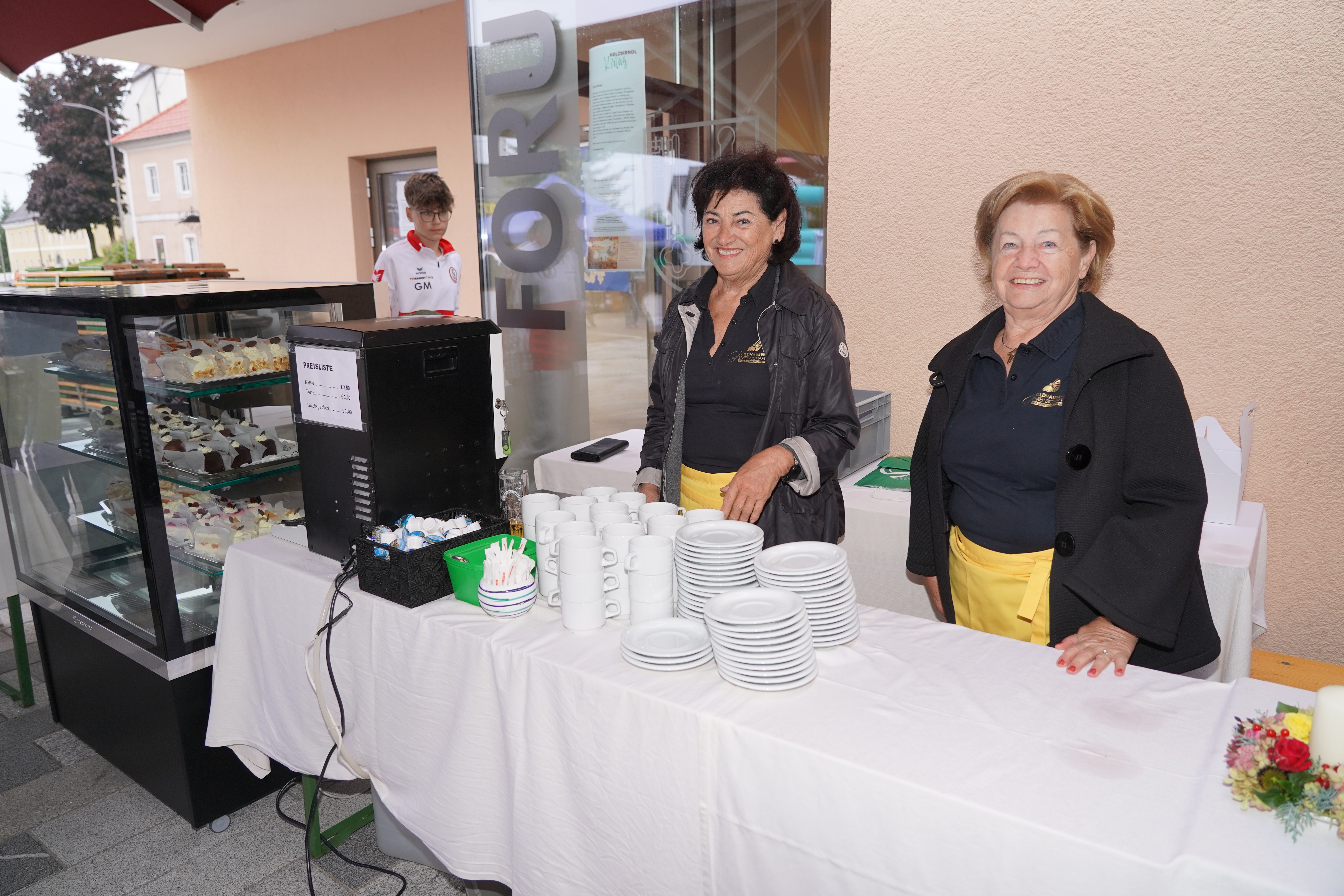 Nach der Messe startete der Kirtag. Trotz des schlechten Wetters war der Dorfplatz äußerst gut besucht. Bei uns am Goldhaubenstandl gab es wie jedes Jahr Kaffee und Kuchen, Lebkuchenherzen und Glückspackerl. Ein besonderes Extra waren die selbst gebundenen Herbstgestecke. Vielen Dank an die zahlreichen helfenden Hände, die den Tag so besonders gemacht haben!