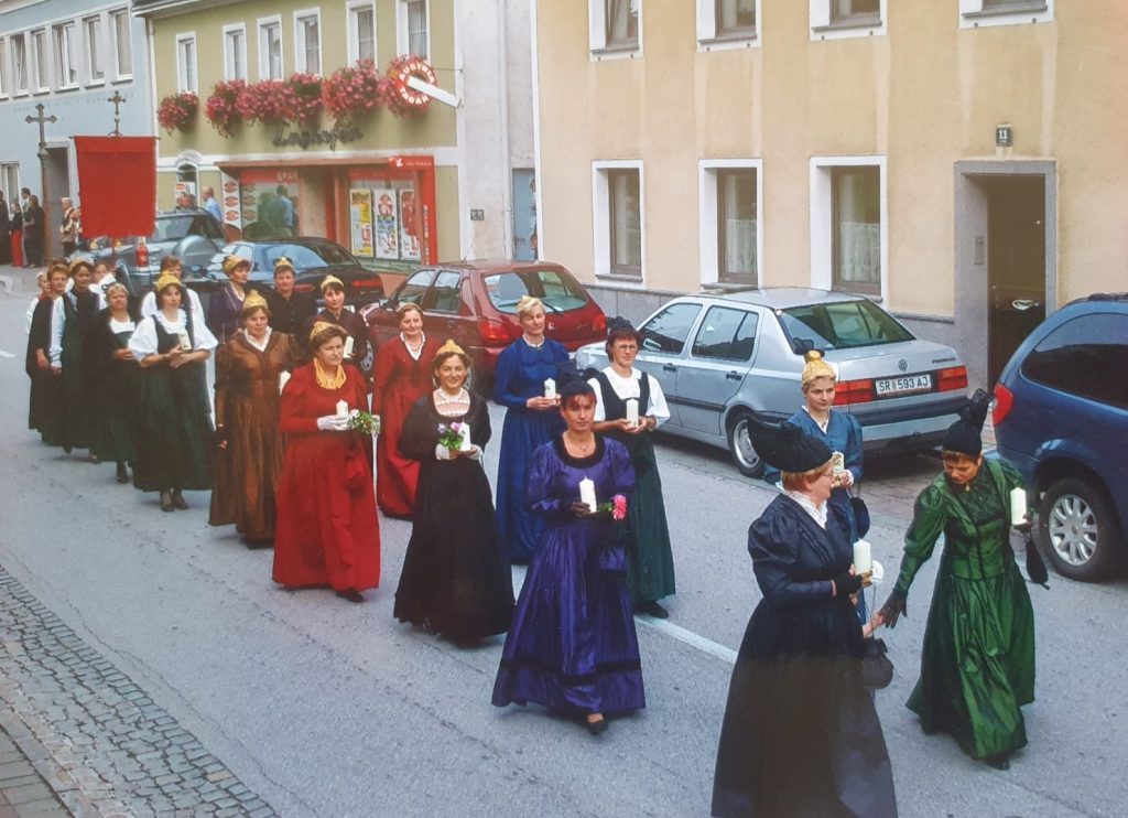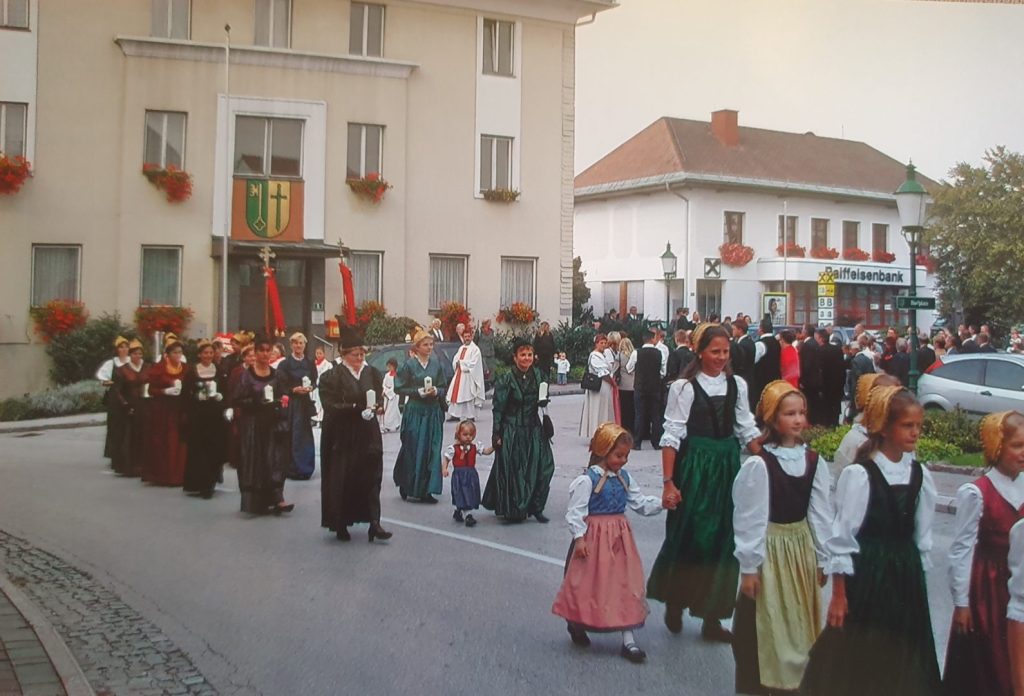 An Fronleichnam feiern Katholikinnen und Katholiken die bleibende Gegenwart Jesu Christi in der Eucharistie und bekennen ihren Glauben durch Prozessionen und festliche Gottesdienste. Die Goldhauben nehmen traditionell an den Feierlichkeiten teil, indem sie in ihrer festlichen Tracht bei der Prozession mitwirken und so zur kulturellen und kirchlichen Atmosphäre beitragen. Im Rahmen des Umzuges wird an den verschiedenen Altären des Ortes Inne gehalten.