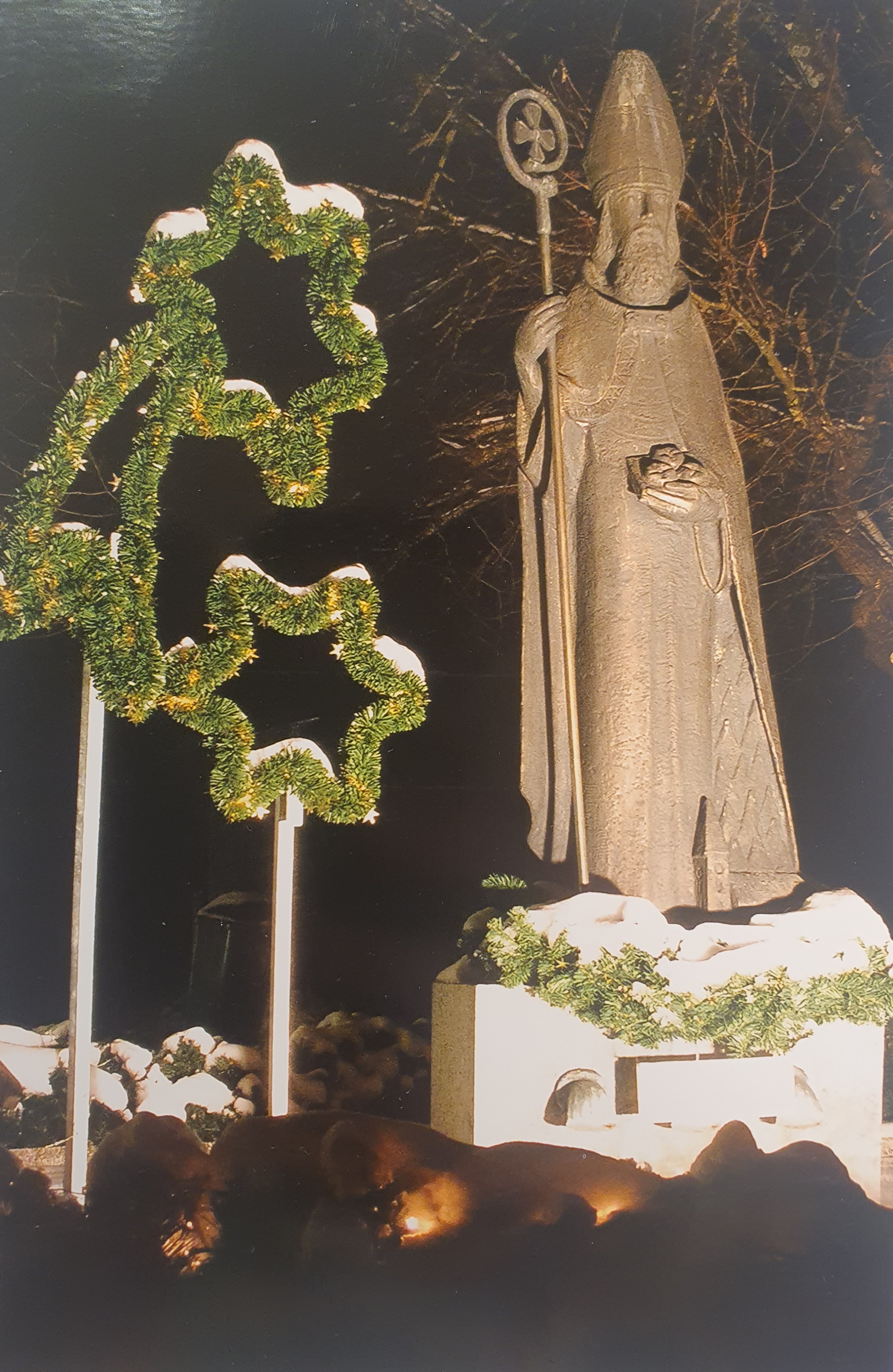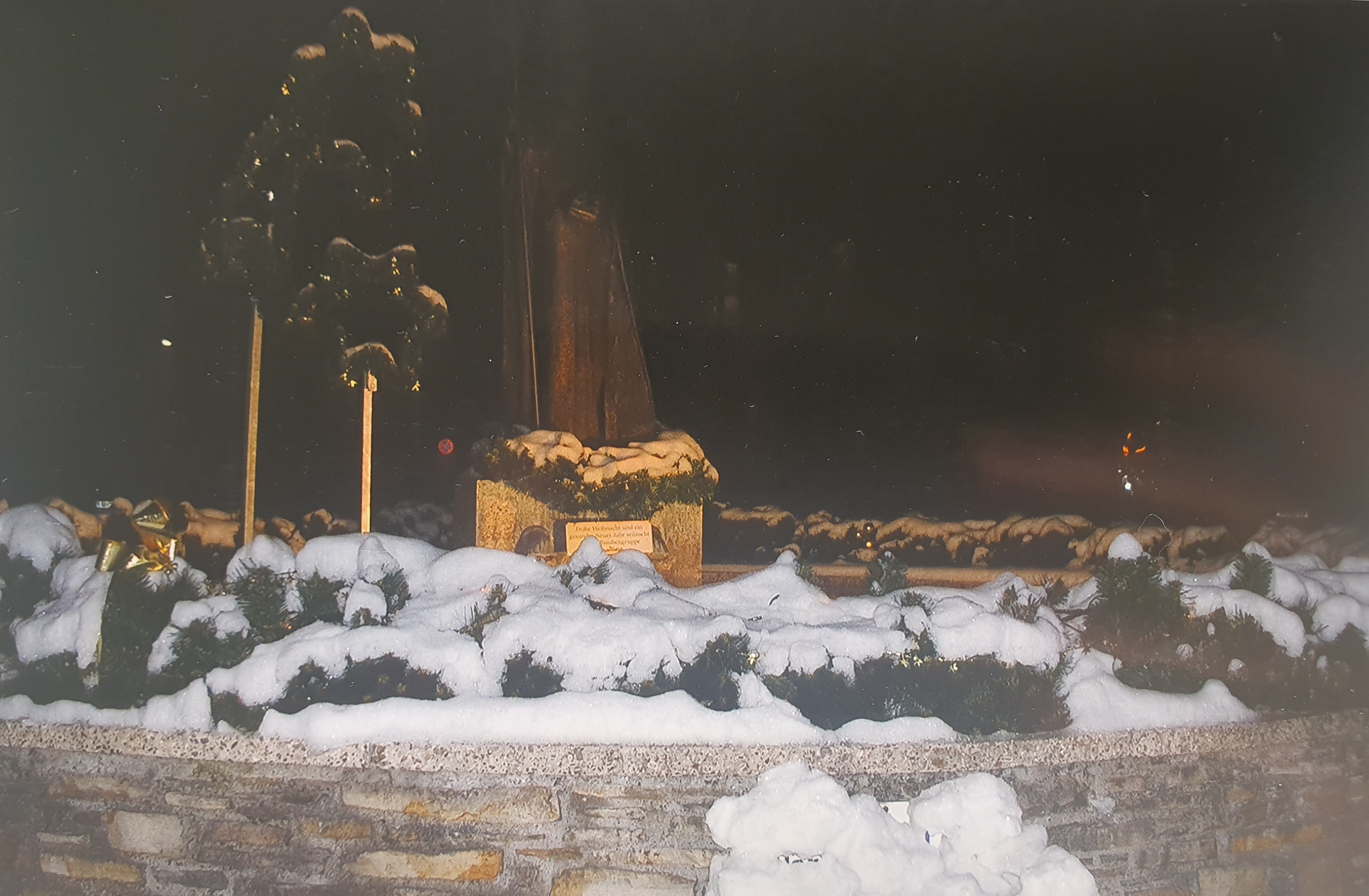 In der Weihnachtszeit wurde der Brunnen am Dorfplatz traditionell von den Goldhaubendamen mit Grast geschmückt.
