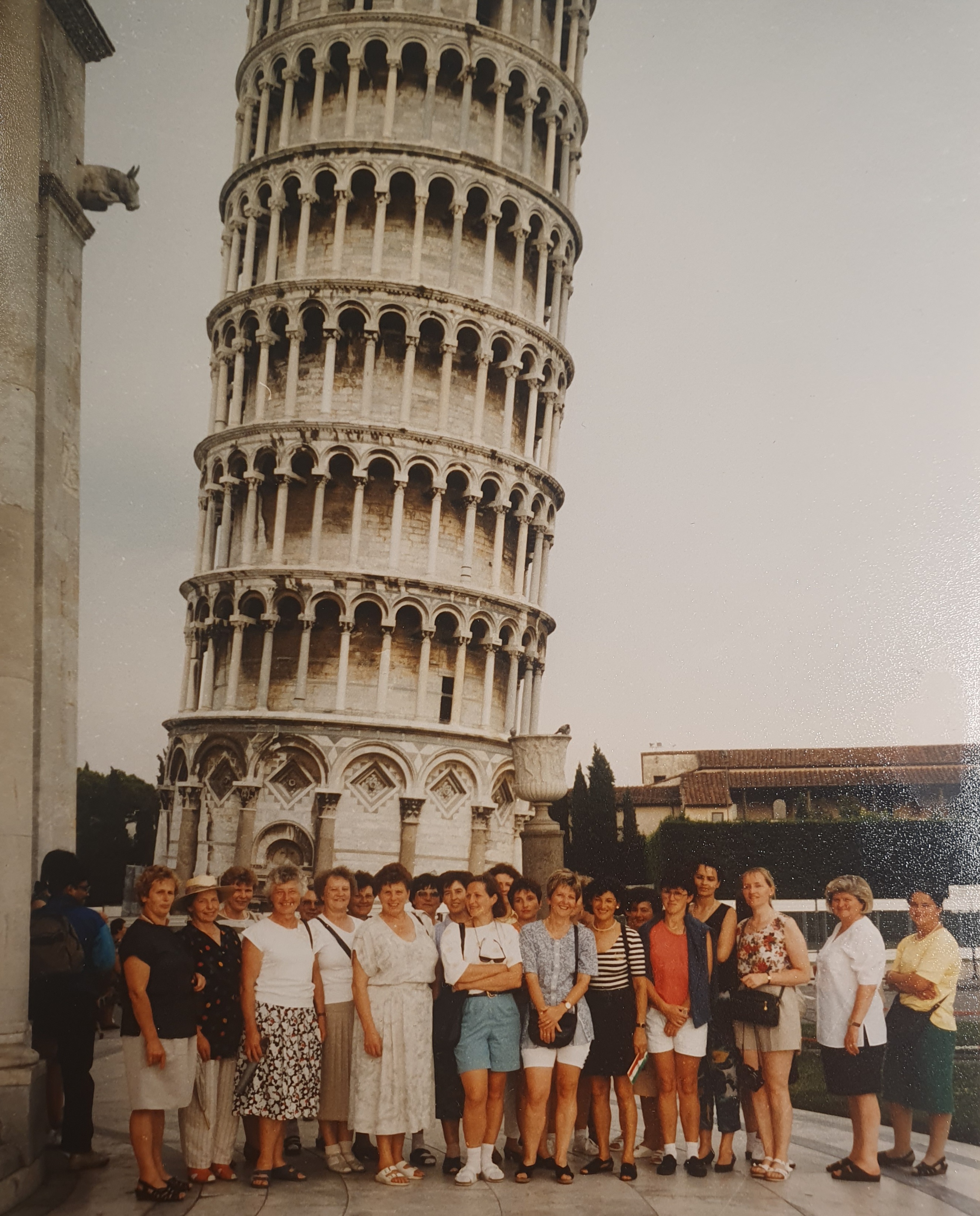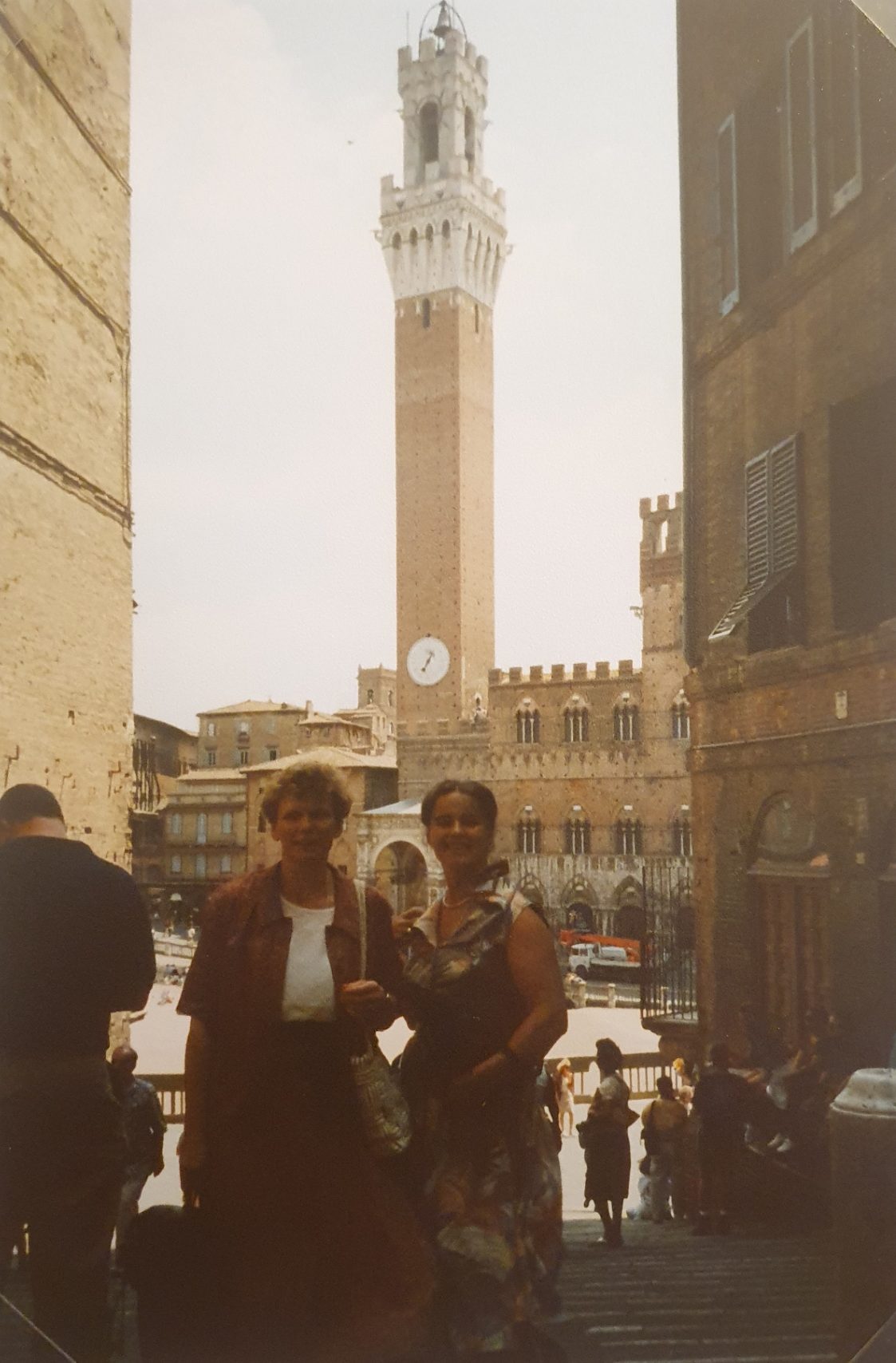 Auch den schiefen Turm von Pisa besuchten sie. Mit dem Turm wurde 1174 begonnen. Während des Baus begann sich der Boden zu senken. Er wurde erst 90 Jahre später fertiggestellt. Siena ist eine wunderschöne, mittelalterliche Stadt mit einer 7 km langen Stadtmauer umgeben. Es befindet sich hier das Haus der Heiligen Katharina von Siena. Der Dom wurde aus weißem, grünem, gelben, rosa und schwarzem Marmor erbaut. Die Bauzeit betrug 2 Jahrhunderte.
