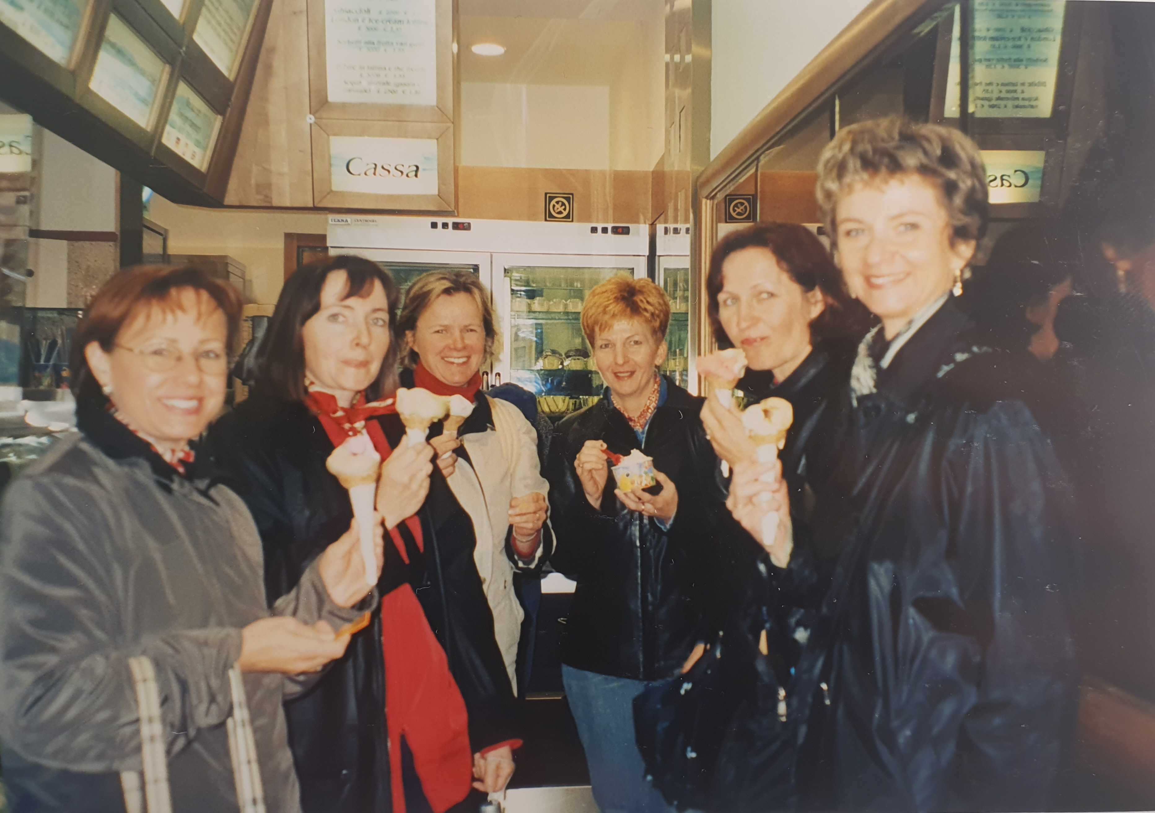 15 Jahre leitete die Obfrau Inge Göschl bereits die Gruppe. Aus diesem Anlass beschlossen die Goldhaubenfrauen, eine mehrtägige Reise zu unternehmen. Sie führte sie in die Toskana, die wie keine andere italienische Region einen Reichtum an Natur- und Kunstschätzen besitzt. Das Meer, die Alpen und die Apenninen, grüne Pinienwälder und sanfte Hügel mit Olivenbäumen und Weingärten erfreuten ihre Augen. In Florenz besichtigten sie den Palazzo Pitti. Er wurde im 14. Jahrhundert von einem Kaufmann namens Pitti in Auftrag gegeben und später von den Medicis übernommen, welche die Stadt 3 Jahrhunderte lang regierten. Als die Medicidynastie ausstarb, regierten die Lothringer. Der Palazzo della Signora wurde anlässlich der Hochzeit von Francesko de Medici mit Johanna von Österreich geschmückt. Im Innenhof befinden sich Gemälde österreichischer Städte.