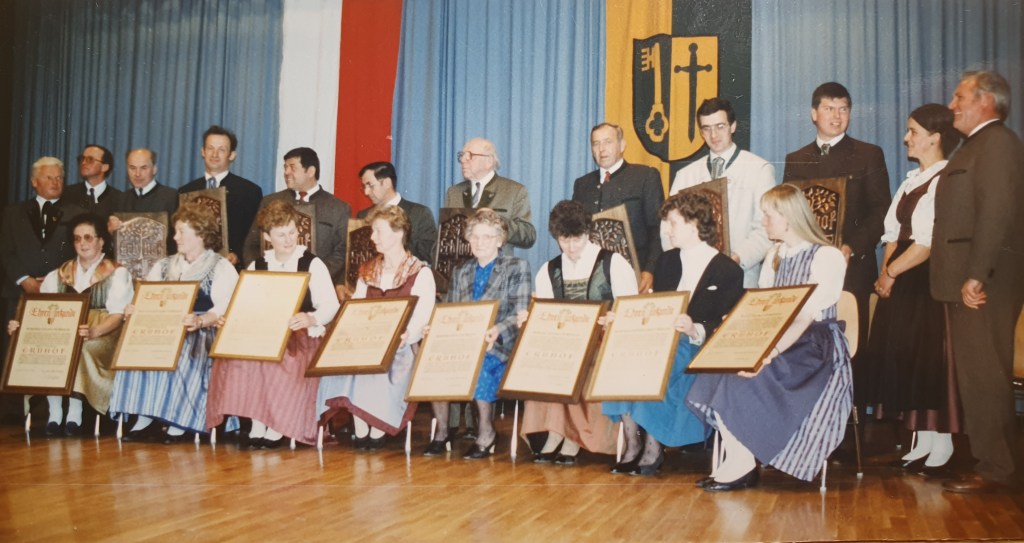 Nach einem Festzug mit der Musikkapelle in die Pfarrkirche wurde der Festgottesdienst abgehalten. Dieser wurde gestaltet von den Erbhoffamilien und dem Singkreis. Darauf folgte der Festakt in der Turnhalle: Überreichung der Erbhofurkunden und Festansprache durch Herrn Landesrat Leopold Hofinger und Herrn Bürgermeister Franz Eder. Im Rahmen der Feier fand in der Turnhalle eine Handarbeitsausstellung statt.