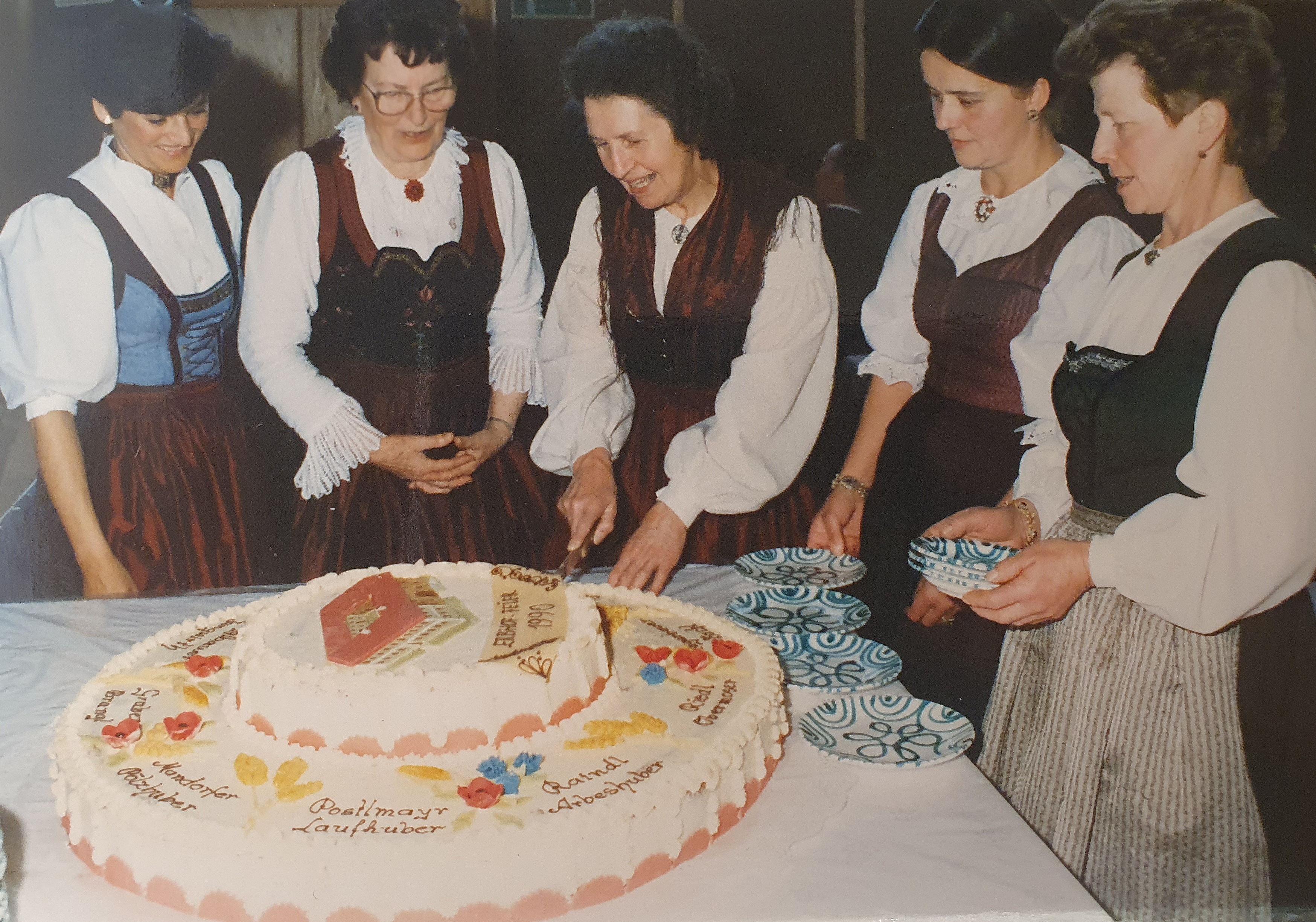 Anschneiden der Erbhoffeiertorte durch Zilli Stögbauer.