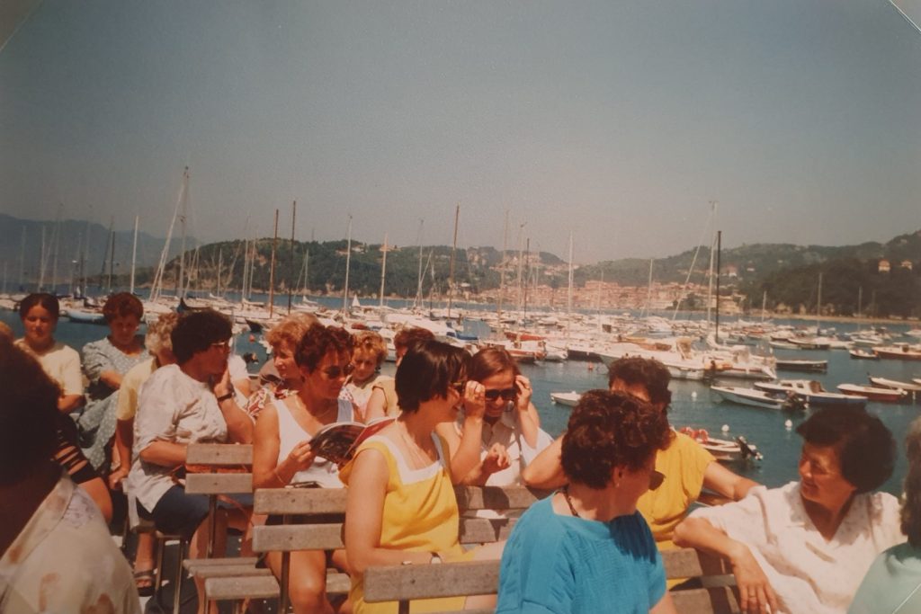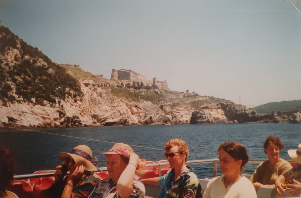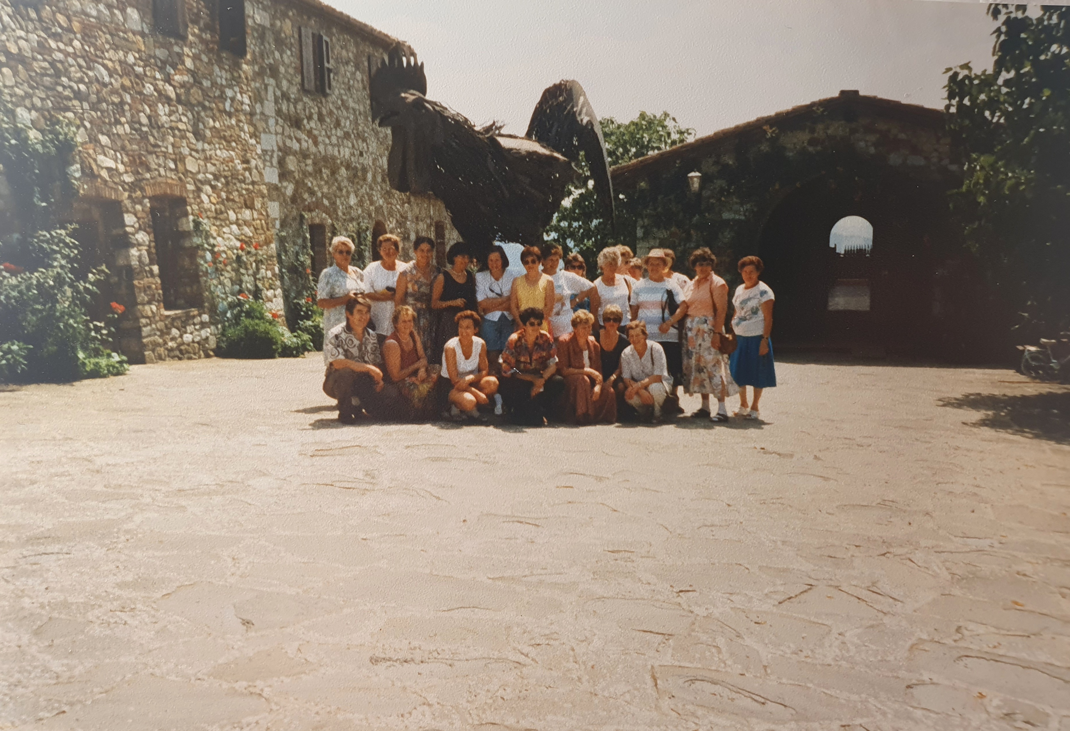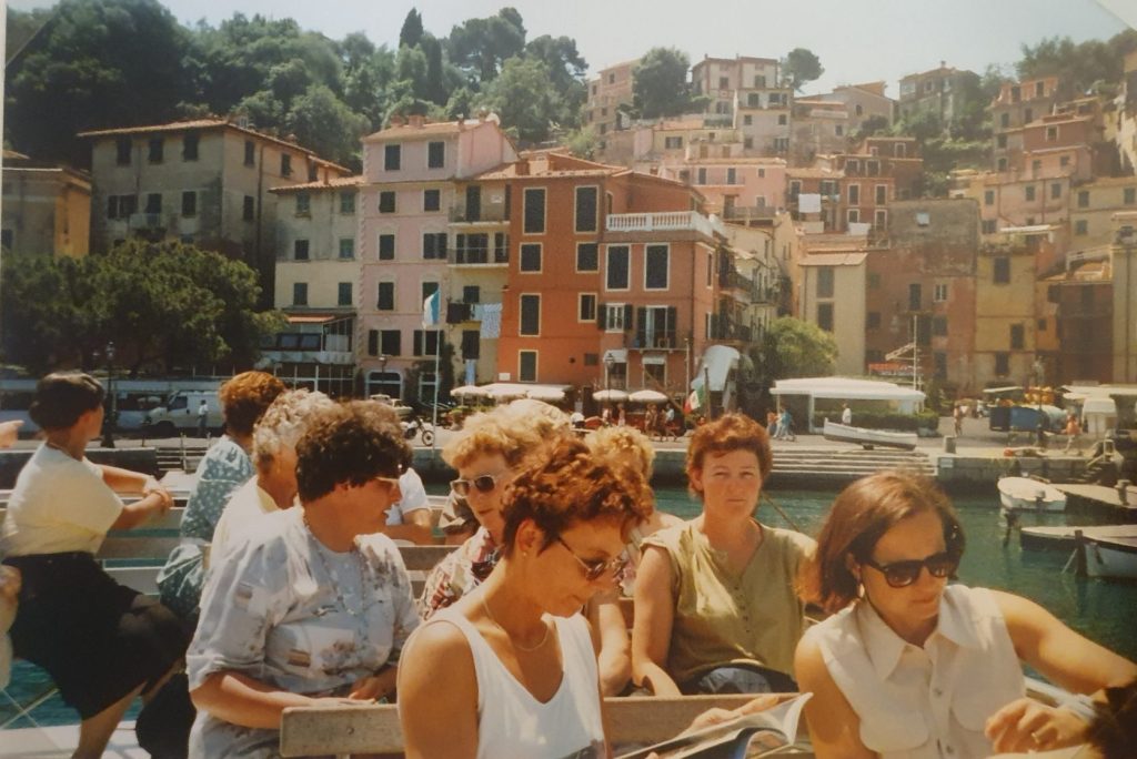 Bei der Fahrt durch das Chiantigebiet besuchten sie ein Weingut. Im Hintergrund des Gruppenfotos (siehe unten erstes Bild der Galerie) sieht man den „schwarzen Hahn“, das Markenzeichen des Chiantis. Diesen schwarzen Hahn aus Eisen hat der Ehegatte der Reiseführerin angefertigt, der Bildhauer ist. Am letzten Tag konnten sich die Damen bei einer Schifffahrt entlang der Küste von Cinque Terre von der Hitze der Stadt erholen und die Landschaft und den Fahrtwind genießen.