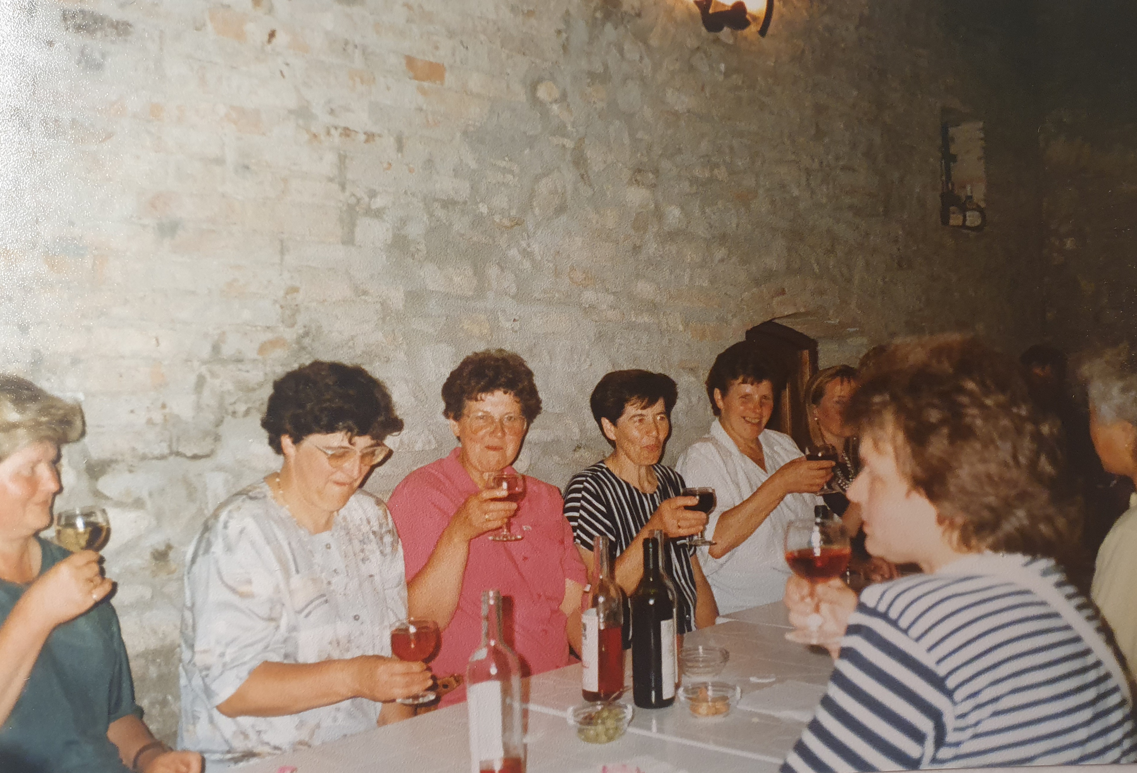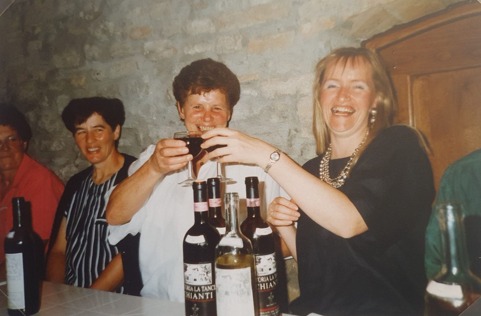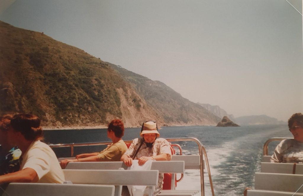 Bei der Fahrt durch das Chiantigebiet besuchten sie ein Weingut. Im Hintergrund des Gruppenfotos (siehe unten erstes Bild der Galerie) sieht man den „schwarzen Hahn“, das Markenzeichen des Chiantis. Diesen schwarzen Hahn aus Eisen hat der Ehegatte der Reiseführerin angefertigt, der Bildhauer ist. Am letzten Tag konnten sich die Damen bei einer Schifffahrt entlang der Küste von Cinque Terre von der Hitze der Stadt erholen und die Landschaft und den Fahrtwind genießen.