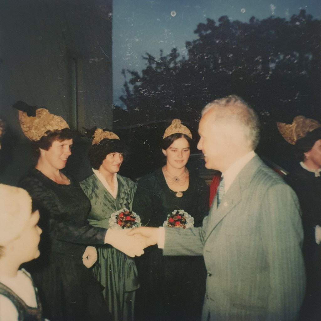 Der erste Auftritt mit der Goldhaube war am 8. September 1979 anlässlich des Besuchs von LH Dr. Josef Ratzenböck und seiner Gattin Anneliese in Waldneukirchen.