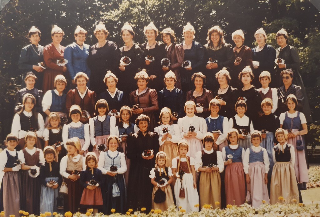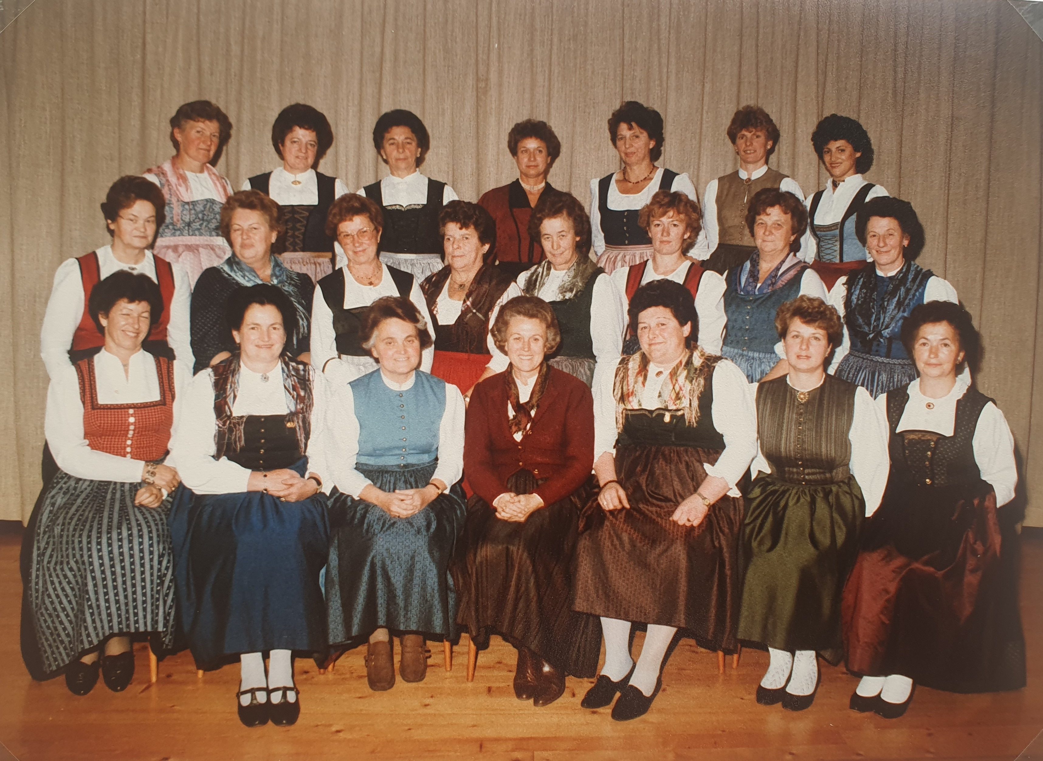 Im Zuge eines Kurses vom 27. Jänner – 4. März 1999 wurden unter der Leitung von Hermine Mairunteregg 13 Trachten genäht. Am 17. April wurden diese offiziell im Gasthaus Pachinger präsentiert.