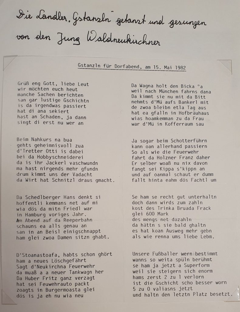 Um größere Renovierungen zu finanzieren, veranstaltete die Goldhaubengruppe gemeinsam mit den Bäuerinnen und der Katholischen Frauenbewegung einen Dorfabend sowie einen Weihnachtsmarkt. Beim Unterhaltungsprogramm ließ man sich einiges einfallen: Hermine Schedelberger dichtete Landlerg’stanzl rund um das Dorfleben, die von den Hirterbuam getanzt und musikalisch vorgetragen wurden. Bei einer Modenschau wurden selbstgenähte Trachten präsentiert.