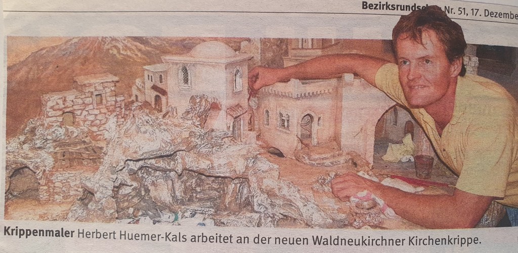 Die Initiative ging von den Blumenbinderinnen der Kirche aus, die in der Goldhaubengruppe tatkräftige Unterstützung fanden. Mit dem geprüften Krippenbaumeister Erwin Großbichler aus Trattenbach begannen die Waldneukirchner ihre Krippe zu bauen. Vom Typ her ist es eine orientalische Krippe mit sechs verschiedenen Szenen. Einmalig ist, dass die Stadt Bethlehem nach Originalbildern aus der Zeit um 1900 gebaut wurde.