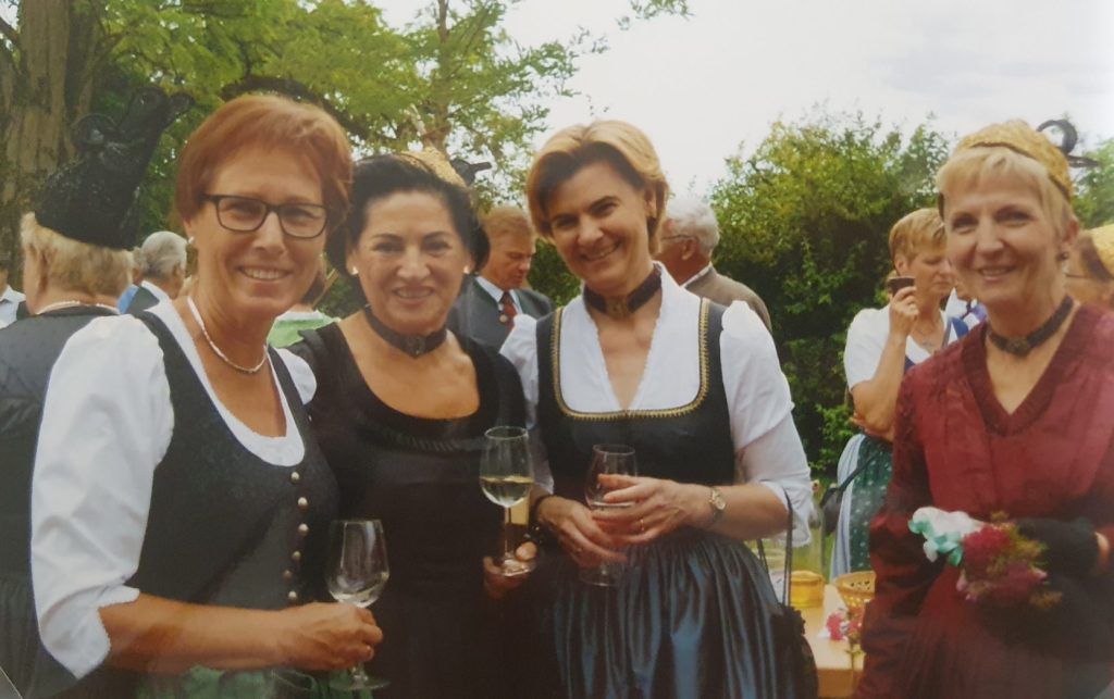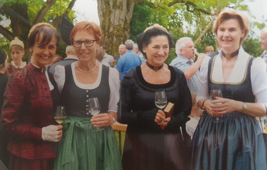 v.l.n.r.: Regina Petz, Inge Göschl, Marina Stehrer, Erni Eder 26. April 2015: Patenschaft für eine neue Musiktracht