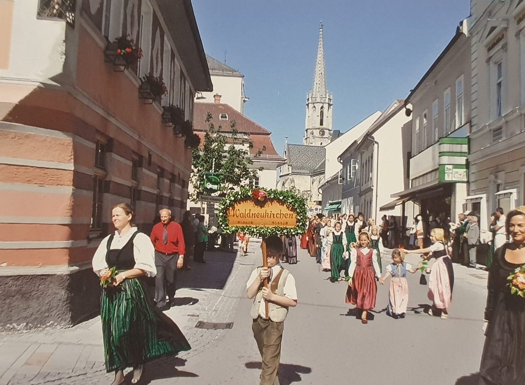 Am Sonntag, 19. Juni, luden die Mitglieder der Bezirksgemeinschaft herzlich zur Mitfeier des 25-jährigen Bestandsjubiläums in Bad Hall im Rahmen der Landesgartenschau ein. Das wunderschöne Ambiente im Kurpark war der Grund, warum man sich für Bad Hall als Veranstaltungsort der Feier entschied. Der Tag startete um 9:15 Uhr mit einem großen Festumzug mit Goldhaubentreffen vom Kirchenplatz zum Kurpark. Um 10 Uhr folgte der ökumenische Gottesdienst mit Kräuterweihe. Der Ehrenschutz und die Festansprache erfolgten durch Labg. Martina Pühringer (Landesobfrau). Von 9:00 – 18:00 konnte man im Gästezentrum die Ausstellung „Rund um die Tracht“ besuchen.