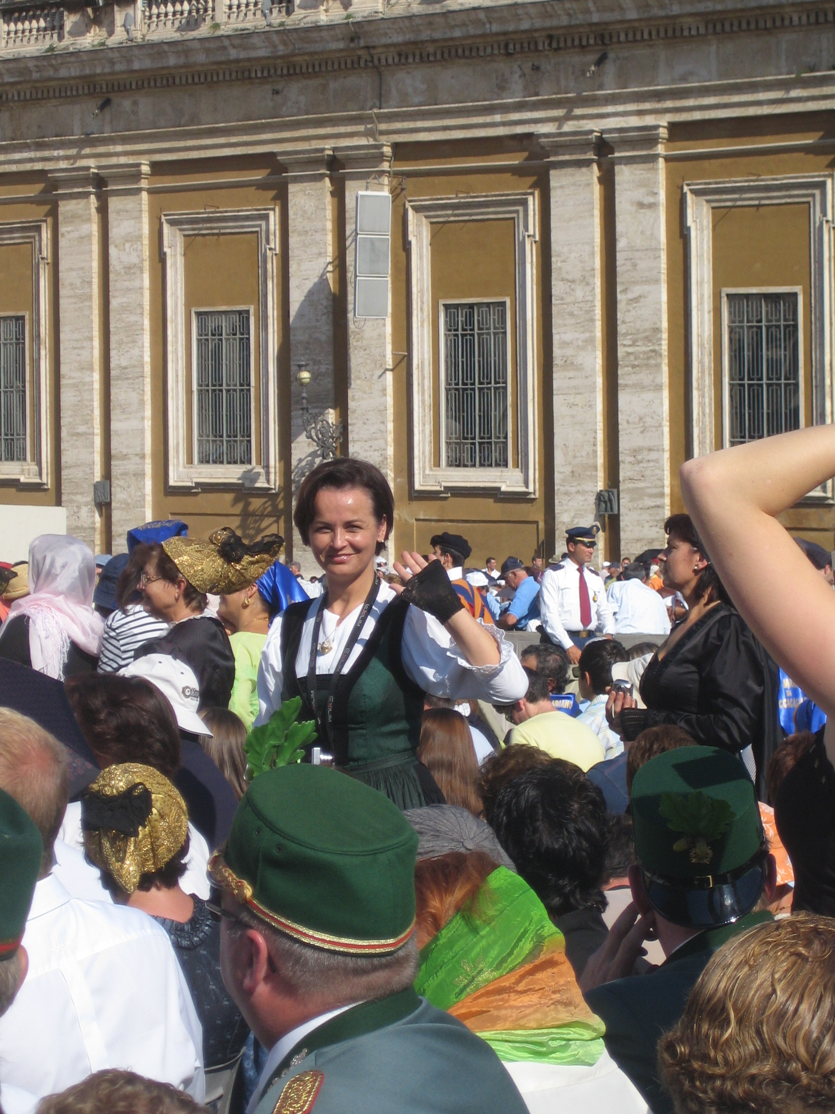 Am 6. September 2006 nahmen über tausend Frauen der oberösterreichischen Goldhaubenbewegung an einer Generalaudienz von Papst Benedikt XVI. auf dem Petersplatz in Rom teil. Auch die Goldhaubenfrauen aus Waldneukirchen waren Teil dieser großen Pilgergruppe, die aus vielen Gemeinden aus Oberösterreich angereist war. Insgesamt waren es etwa 1.200 Frauen, die in traditioneller Tracht bei der Wallfahrt dabei waren und bildeten durch ihre prächtigen Goldhauben ein besonders auffälliges Bild unter den Pilgern. Die Reise wurde von kirchlichen Vertretern begleitet, darunter der damalige Linzer Bischof Ludwig Schwarz sowie der Passauer Bischof Wilhelm Schraml. Schon vor Beginn der Audienz sorgte eine Musikkapelle aus Ohlsdorf auf einer Tribüne für eine festliche Stimmung auf dem Petersplatz. Während der Ansprache begrüßte Papst Benedikt XVI. die große Gruppe der Goldhaubenfrauen aus Oberösterreich und Bayern ausdrücklich. Dabei betonte er seine Wertschätzung für diese Tracht und ermutigte die Frauen, sie weiterhin „zur Ehre Gottes“ zu tragen. Für viele Teilnehmerinnen war es ein besonders bewegender Moment, vom Papst persönlich erwähnt zu werden. Die Wallfahrt gilt bis heute als eines der größten gemeinsamen Ereignisse der Goldhaubenbewegung in Oberösterreich und wird in vielen Ortschroniken, auch in Waldneukirchen, als besonderer Höhepunkt erwähnt. Durch die große Anzahl an Trachtenträgerinnen und die feierliche Atmosphäre blieb dieser Tag vielen Beteiligten lange in Erinnerung.